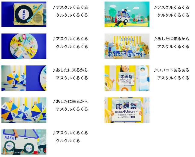 アスクル株式会社(本社:東京都江東区、代表取締役社長:吉岡晃、以下「アスクル」)は11月 6 日(月)より、事業所向け(BtoB)通販サービス「ASKUL」の新TV-CM「アスクルくるくる」応援祭篇(15 秒)・新規登録10%OFF篇(15 秒)を全国(一部地域を除く)でオンエアを開始します。