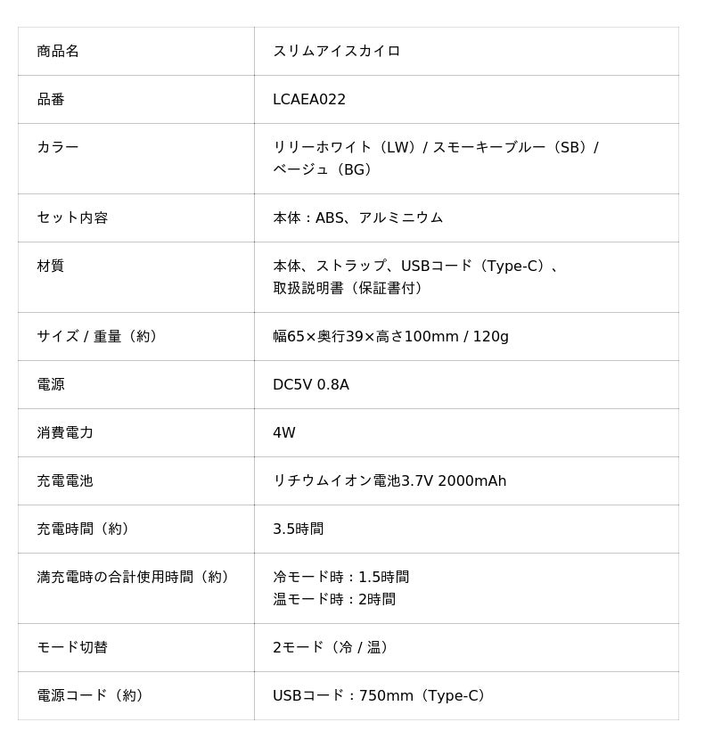 「スリムアイスカイロ」LCAEA022価格:3,278円(税込)