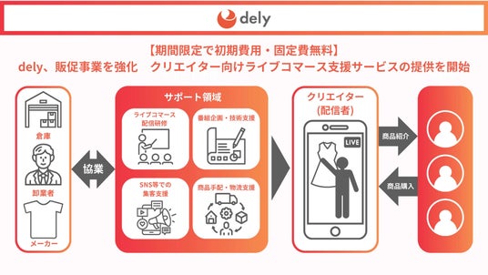 dely株式会社(本社:東京都品川区、代表取締役:堀江 裕介)は、2025年4月より、今後の市場拡大が見込まれるライブコマース分野において、クリエイターの本格参入と活躍を支援するライブコマース支援サービスの提供を開始いたします。