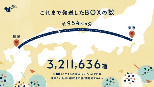 数字で見るスナックミーの10年(インフォグラフィック)■日本列島の約3分の1を繋ぐほどのおやつBOXを全国にお届け