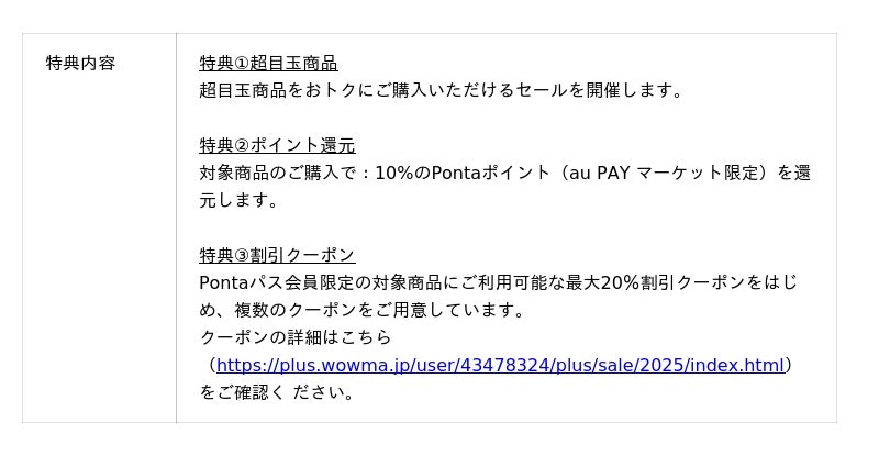 ■12月のポイント超超祭の特典概要1. コジマ au PAY マーケット店(https://plus.wowma.jp/user/43478324/plus/sale/2025/index.html)
