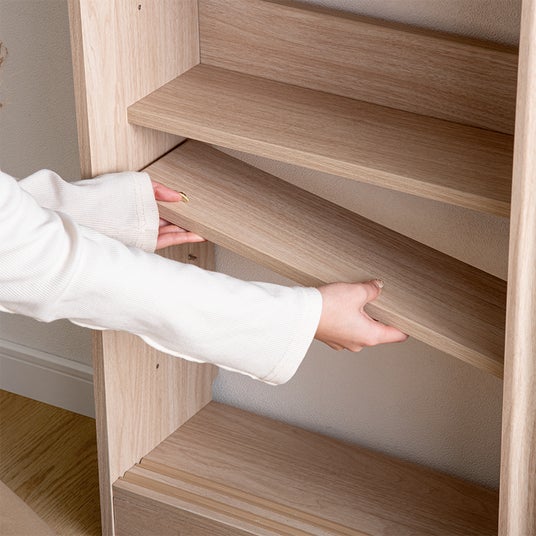 ◢ 動線を妨げないスリムなサイズ展開最小15cmからの奥行設定により、通路の狭い場所でも日常の動きを邪魔することなく、効率的な収納空間を創出します。