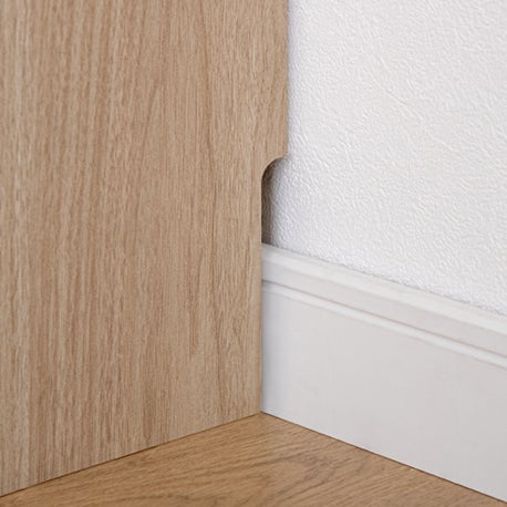 家具の背面裾部分には「巾木除け加工」を施しており、壁との間に不要な隙間を作らずピッタリと寄せて設置できます。