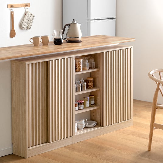 家具・寝具・インテリアの企画・販売を手掛けるタンスのゲン株式会社(本社:福岡県大川市、代表取締役:橋爪裕和、以下タンスのゲン)は、キッチンのデッドスペースを有効活用し、ダイニング周りの生活感をスッキリと解消する「カウンター下収納シリーズ」を新たに発売いたしました。本製品は、通路を妨げない最小奥行15cmの超スリム設計でありながら、陰影が映える「波状デザイン」や、インテリアに馴染む「北欧風ツートンカラー」など、高いデザイン性を備えているのが特徴です。機能面では、収納物に合わせて高さを調節できる「7段階可動棚」を採用し、散らかりがちな文房具や書類、日用品を「隠す収納」ですっきりと整理いただけます。