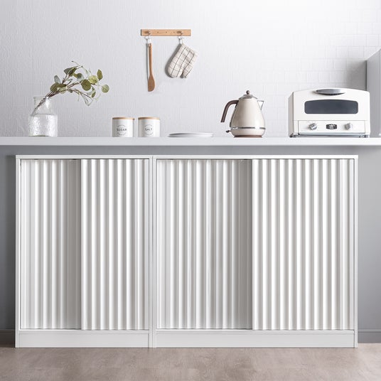 (写真:カウンター下収納 波状デザインモデル カラーホワイト)