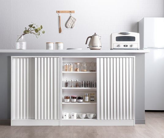タンスのゲン奥行15cmからの超スリム設計。生活感を隠す「波状デザイン」と「北欧風ツートン」。カウンター下のみならずキッチンやリビング~どこでも設置可能な全60種を展開。