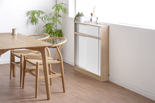 この薄型設計により、ダイニングの通路幅を確保しつつ、日常生活の動線を邪魔することなく効率的な収納スペースを創出します。