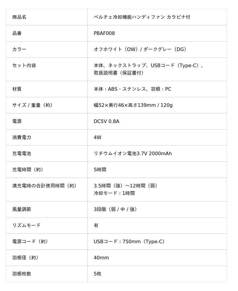 「ペルチェ冷却機能ハンディファン カラビナ付」PBAF008価格:1,958円(税込)