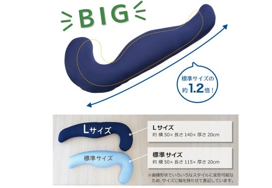 「MOGU 気持ちいい抱きまくら Lサイズ」は、「もっと大きなサイズが欲しい」というお客さまのお声から、MOGU×まくら(株)のコラボにより、従来のものよりひと回り大きいサイズの抱き枕として登場しました。