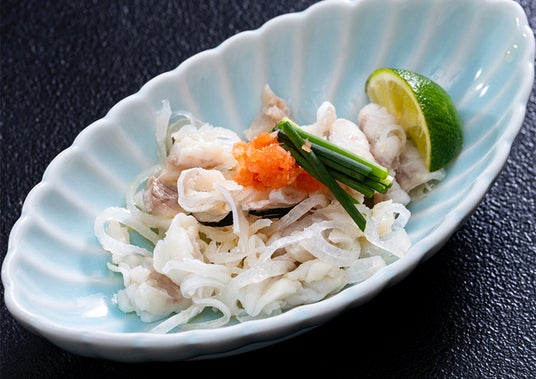 2.てっさ(刺身)を贅沢に すだち・寸葱・もみじおろし・ポン酢を添えて、淡白な旨味を引き立てます。