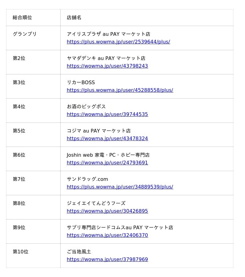 https://wowma.jp/event/bestshop/index.html)でご確認ください。