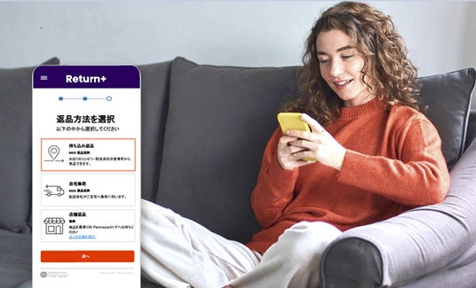 商品購入者は、「Return+\リターンプラス」に表示される注文履歴から返品したい商品を選択すると、複数の返品方法から最も便利な方法を選ぶことができます。例えば、梱包不要となる最寄りの店舗での返品や、QRコードを使いコンビニエンスストアや宅配ロッカーから返品するペーパーレス返品などが選択可能です。