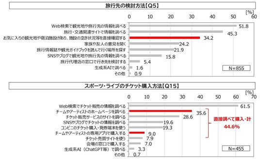 図2.旅行先の検討方法/スポーツ・ライブのチケット購入方法