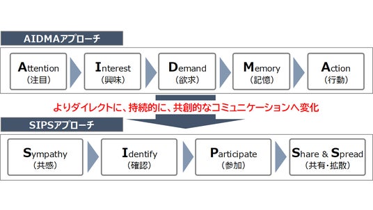 図1.AIDMAアプローチからSIPSアプローチへの変化