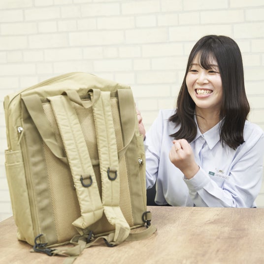 「be with famトートリュックは前作の良さを引き継ぎつつ、より工夫したほうがよいポイントを改良した機能性とファッション性を兼ね備えた新しいオリジナルバッグです。もっと皆さまのお役に立ちたいという開発メンバーの想いが込められた自信作です。日常はもちろん、春休みやゴールデンウィークのお出かけ時の頼もしい相棒になると思います。『まだbe with famを手に取ったことがない』という方は是非この機会に触れていただきたいです。」