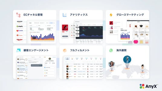 「AnyX」はECモールや自社ECサイトなど、複数の販売チャネルを一元管理することで、EC運営を支えるECマネジメントプラットフォームです。業務効率化×データ活用、豊富な実績を元にした運用支援、各国・市場のローカルの知見を生かした越境展開・海外販売まで、EC事業の成長に向けた幅広いソリューションを提供します。