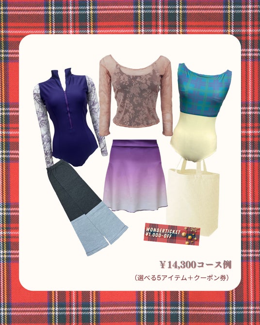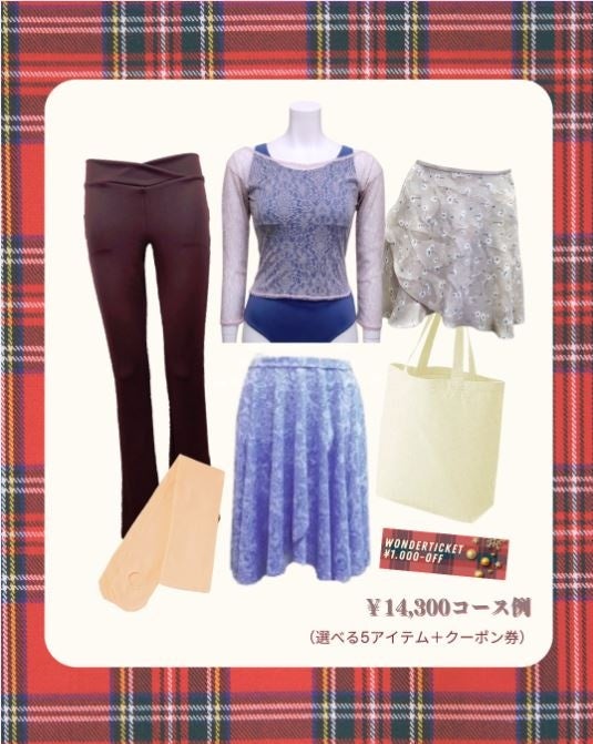 たくさんの商品の中から好きなアイテムを選び、自分だけのオリジナル福袋を作ることができる、冬だけの特別企画です。「好みに合わないデザインの商品やサイズが合わない商品が入っていたらどうしよう」という心配がなく、お気に入りのアイテムだけを詰め込んでいただける特別感のある福袋となっています。さらに各コースには、次回以降ご使用いただける「ワンダーチケット」が特典として付いており、消耗品も多いバレエのレッスンを継続的に楽しんでいただける工夫の凝らした企画・フェアです。