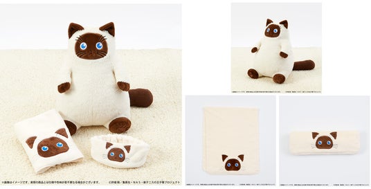 また本商品を含めた「カルピンとおうち時間」シリーズとして、「カルピン ヘアバンド」、「カルピン ヘアドライタオル」、さらに、カルピンそっくりの「抱きまくら」を抱えた主人公・越前リョーマと愛猫のカルピンの新規描き下ろしイラストを使用したアクリルスタンド、缶バッジも同時展開します。