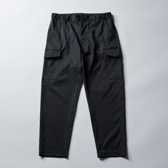 特徴:ワンタック入りのややゆったりとしたシルエットのカーゴパンツ。ウエストの紐は内側でも外側でも結べる仕様。撥水・速乾。