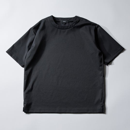 特徴:体のラインを拾わないボックス型シルエットの半袖Tシャツ。左肩には着脱しやすいコンシールファスナー付き。撥水・速乾。