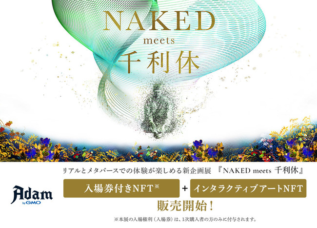 GMOインターネットグループのGMOフィナンシャルホールディングス株式会社の連結会社であるGMOアダム株式会社(代表取締役:高島 秀行 以下、GMOアダム)が運営するNFTマーケットプレイス「Adam byGMO」(URL:https://adam.jp/)において、株式会社ネイキッド(英語表記:NAKED, INC. 代表:村松亮太郎 以下、NAKED, INC.)が金沢21世紀美術館及びメタバース上の美術館「メタバースミュージアム」で開催する新作展示会『NAKED meets 千利休』の入場権利(入場券)(※1)が付いたリアルイベント連動型NFTを2022年7月22日(木)より販売開始いたします。