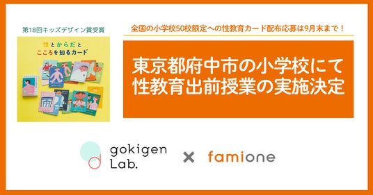 https://famione.com/benefit/ などを展開する株式会社ファミワン(本社:東京都渋谷区、代表取締役:石川勇介)は、株式会社フェリシモ(本社:兵庫県神戸市、代表取締役社長:矢崎和彦)が展開する、「gokigen Lab.」(以下「ゴキゲンラボ」)と共同で、性教育ツール「性とからだとこころを知るカード」を全国の小学校を対象に配布キャンペーンを行っており、限定1校での専門家による性教育出前授業を東京都府中市の小学校にて実施することを決定いたしました。