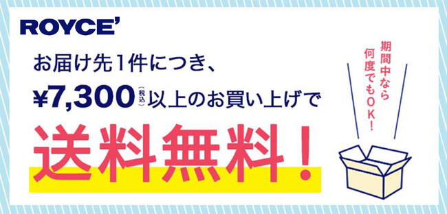 ■対象ロイズ通信販売(公式オンラインショップ・電話・FAX・はがき)、ロイズ直営店、札幌丸井今井店、厚別サンピアザ店にて、お届け先1件につき、商品代金の合計が7,300円(税込)以上お買い上げの場合。■ご注文期間