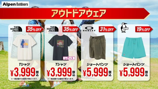 夏物ウェアが早くも30%OFF続出。Tシャツ、ハーフパンツをはじめ夏に着たいウェアがうれしい価格で登場。