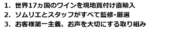 ベルーナグループでは、“お客様の衣食住遊を豊かにする商品やサービスの提供”という経営理念の下、今後も専属ソムリエとスタッフで世界17ヵ国から厳選した美味しいワインをお客様へお手頃価格で提供し続けてまいります。