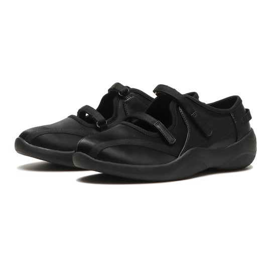 アッパーに同色のテープを使うことでフェミニンな印象に。二本のストラップはベルクロ付きで着脱も容易。スカートなどの甘めなコーデにもパンツスタイルにも取り入れやすい一足。