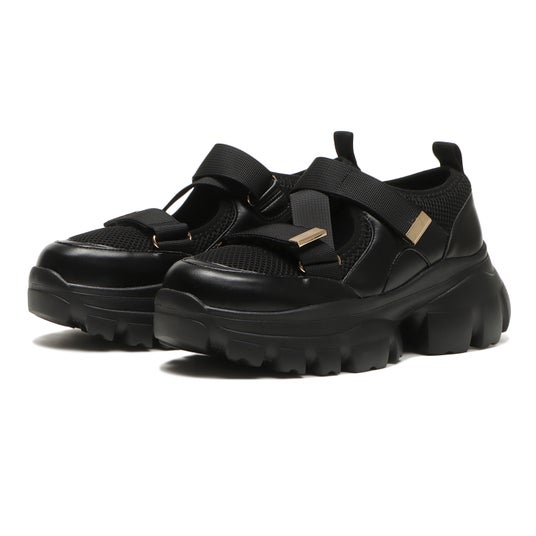 ストリート×スポーツで、トレンドのボリュームのあるソールが特徴的なスニーカー。春夏シーズンにピッタリなメッシュ素材を使用しており通気性に優れており、ベルクロ仕様でサイズを微調整することで着脱も容易です。ボリューミーな見た目ですが、軽量で安定感も有り長時間歩いても疲れにくい一足。ソールは美脚効果もあり、スタイルアップを叶えます。