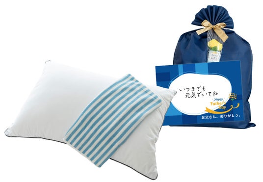 感謝の気持ちをしっかり伝えたいなら、父の日まくら。特大メッセージ付きで、照れくさい気持ちもしっかり伝わります。10種類のメッセージから選べ、気持ちを代弁。使いやすい枕と専用カバー、心温まるメッセージカードの特別セットです。