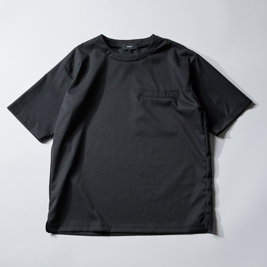 特徴:独自の新素材「ultimex」を使用した、絶妙な光沢感で1枚でもサマになるTシャツ。体型を拾いにくい、リラックス感のあるオーバーシルエット。スマホがすっぽり入る胸ポケット付き。肩口ファスナーで着脱をイージーに。ストレッチ・撥水・速乾・ウォッシャブル。
