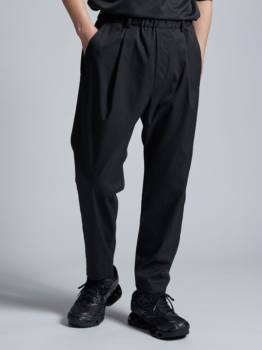 特徴:独自の新素材「ultimex」を使用した、ワンタック入りのややゆったりとしたシルエットのイージーパンツ。裾に向かって細くなるテーパードで、上品な印象を与えながらスタイルアップ。ウエストのドローコードは内側でも外側でも結べる仕様。ストレッチ・撥水・速乾・ウォッシャブル。