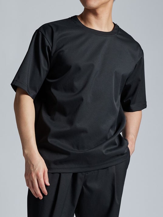 特徴:タフで高機能な特殊な糸を使用した、ウォッシャブルな高機能半袖ニット。体のラインを拾わない絶妙な厚みとシルエット。洗濯機で洗えて毛玉になりにくく、型崩れが起きにくい。ストレッチ・速乾・ウォッシャブル・抗ピリング加工。