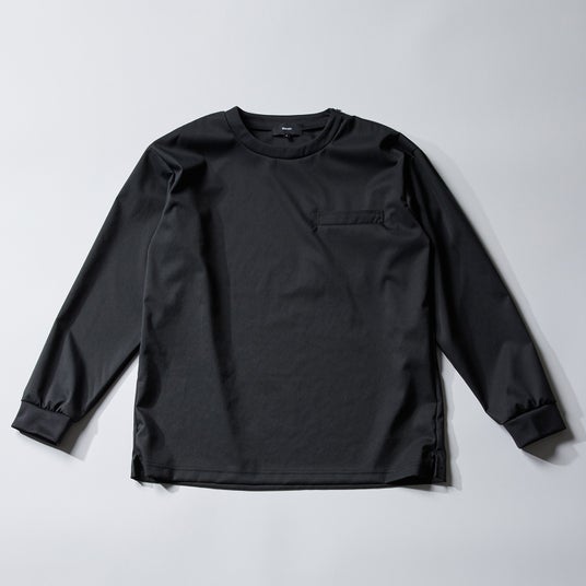 特徴:独自の新素材「ultimex」を使用した、絶妙な光沢感で1枚でもサマになるロングスリーブTシャツ。体のラインを拾いにくい、リラックス感のあるボックスシルエット。着脱を楽にする肩口ファスナーと、スマホがすっぽり入る胸ポケット付き。ストレッチ・撥水・速乾・ウォッシャブル。