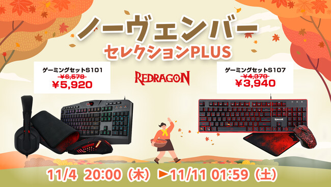 楽天市場「Show !t」は11月4日20:00~11月11日01:59まで開催される、楽天お買い物マラソンに参加し、PCゲーム向けのREDRAGONウスやマウスパッド、ヘッドセット、キーボードなど、スターターセットを10%オフセール価格で販売します。ポイント10倍プレゼント、お得に購入できるのこの機会に、ゲーム用品を揃えてPCゲームを思いっきり楽しみましょう。