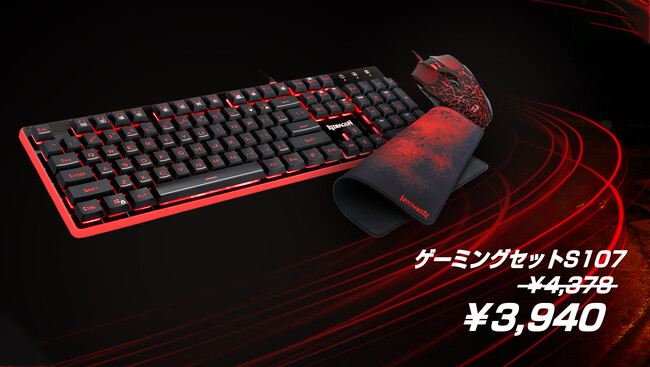 REDRAGON キーボード、マウス、マウスパッド3点セット 通常価格4,378円(税込み) → 限定価格3,940円(税込み)【URL】