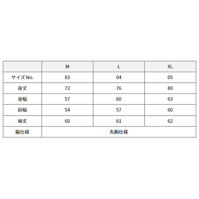 ●サイズ:身丈/身幅/肩幅/袖丈(cm)