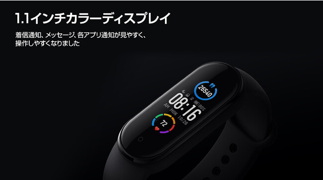 Xiaomiのスマートで見やすい1,1インチフルカラーディスプレイが魅力のMi Band 5
