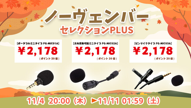 楽天市場「Show !t」は11月4日(水)20:00~11月11日(水)01:59まで3種類から選べるコンデンサーマイク購入でポイント20倍プレゼント・全商品送料無料の楽お買い物マラソンに参加します。