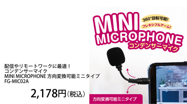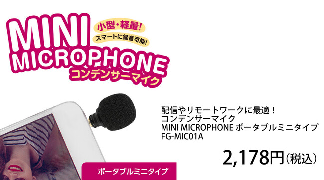 ポータブルミニタイプのコンデンサーマイク FG-MIC01A 価格2,178円(税込)