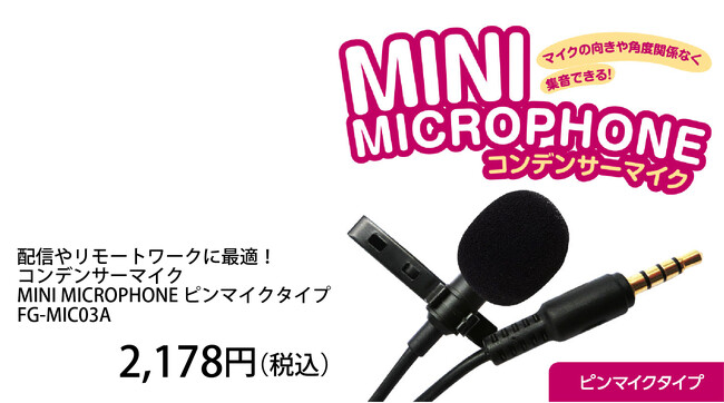 ピンマイクタイプのコンデンサーマイク FG-MIC03A 価格2,178円(税込)