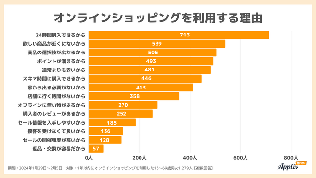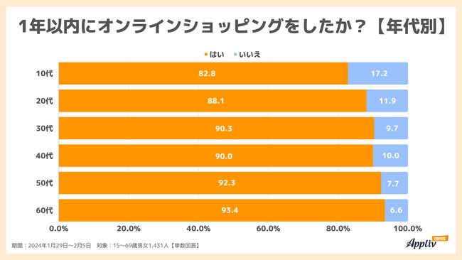 ■アンケート調査結果「Appliv TOPICS」は15~69歳男女1,431人を対象に、2024年1月29日~2月5日の期間で、オンラインショッピングに関するアンケートを実施しました。