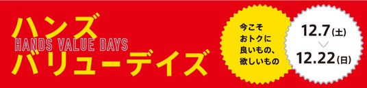 株式会社ハンズ(本社:東京都新宿区)は、12月7日(土)より12月22日(日)まで、「ハンズのブラックフライデーバリューデイズ」を開催いたします。