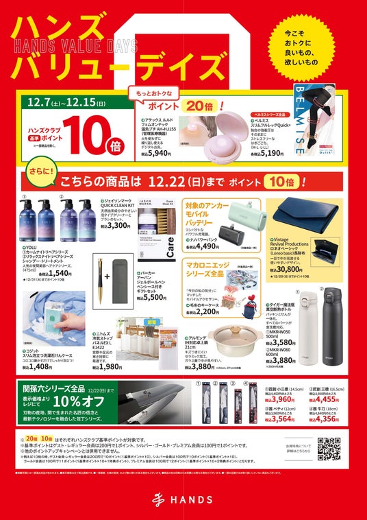 「ハンズバリューデイズ」特設サイトはこちら>>■ <12/15(日)まで>ハンズクラブ基準ポイントが全品10倍!
