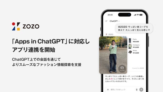 株式会社ZOZO(本社:千葉県千葉市 代表取締役社長兼CEO:澤田 宏太郎)は、OpenAIの対話型AI「ChatGPT」の新機能「Apps in ChatGPT」(※1)にファッション領域でいち早く対応し、アプリ連携を開始しました。