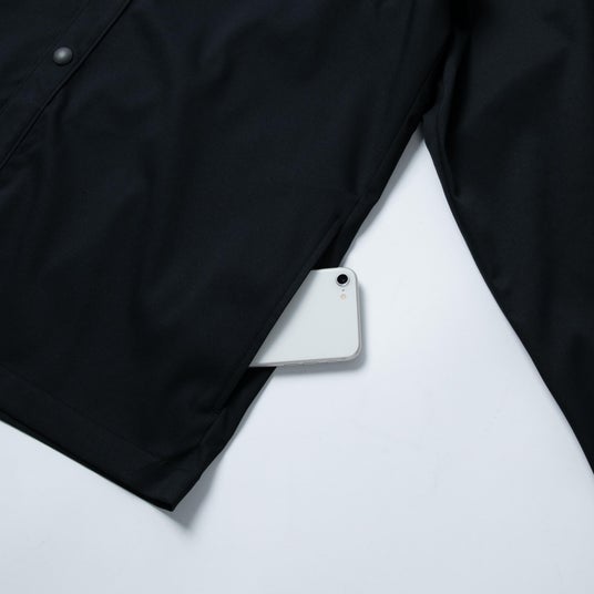 特徴:リラックス感のあるボックスシルエットが特徴のシャツブルゾン。速乾・撥水・ストレッチ・防シワ・耐久性などの機能を備える自社オリジナル素材「ultimex」を使用。シンプルなデザインながら、体のラインを拾いにくく、ビジネスからキレイめカジュアルまで様々なコーディネートをお楽しみいただけます。両サイドにポケット付きで、スマートフォンや小物も収納可能。着脱がしやすいドットボタンを採用。シワになりにくく、アイロン要らずで美しいシルエットをキープします。
