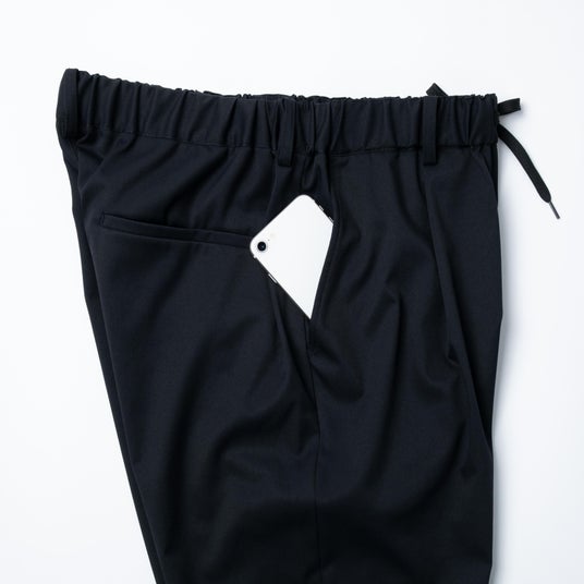 特徴:ゆったりとしたテーパードシルエットが特徴のワンタックイージーパンツ。ワンタック入りのデザインで、リラックス感がありつつも、上品な印象を演出します。ウエスト部分は、内側・外側どちらでも結べるドローコードと柔らかなウエストゴム仕様で、快適な穿き心地にこだわりました。丈感はやや短めで足元すっきり。ビジネスシーンからキレイめなコーディネートまで、幅広く愛用できる一枚です。