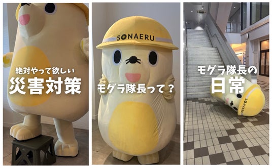 地中で静かに暮らすモグラのように、見えないところで“そなえる”ことの大切さを伝え、緊張感のある場面でも親しみとやわらかさを届けられる存在として活躍しています。